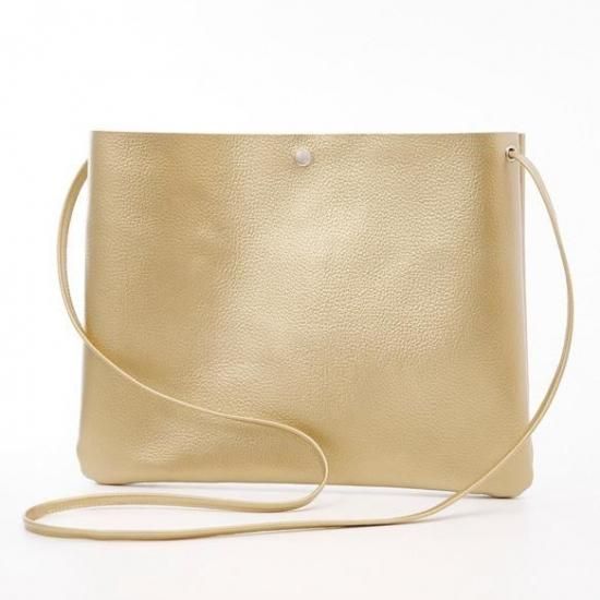 【日本製 A4対応】本革シュリンクレザー サコッシュ 【ショルダー長さ自由自在調節可能】 (シャンパンゴールド)
