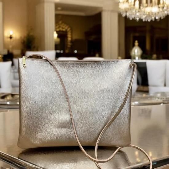 【日本製 A4対応】本革シュリンクレザー ファスナー開閉 サコッシュ 【ショルダー長さ自由自在調節可能】(ピンクゴールド)