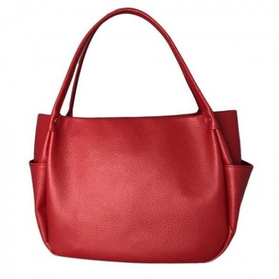 【日本製】オール牛革 天ファスナー 本革バッグ 軽量 リアル シュリンクレザー ハンドバッグ(レッド)
