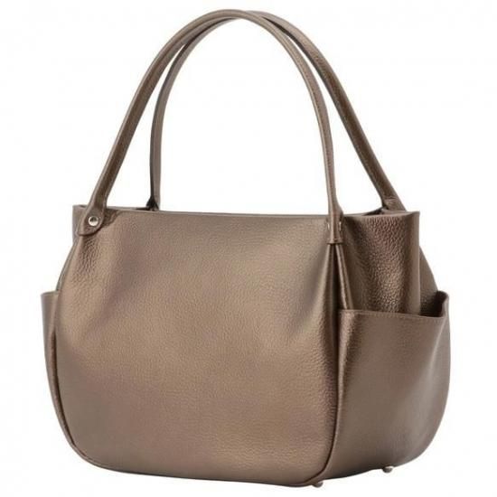 【日本製】オール牛革 天ファスナー 本革バッグ 軽量 リアル シュリンクレザー ハンドバッグ(ブロンズ)