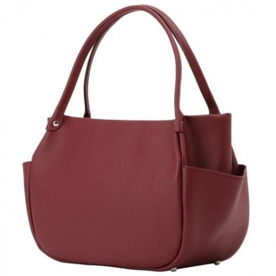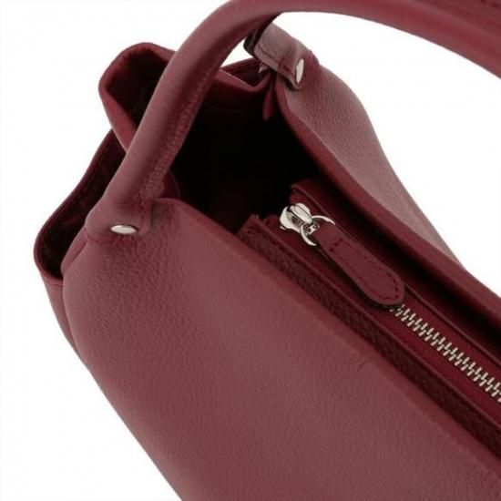 【日本製】オール牛革 天ファスナー 本革バッグ 軽量 リアル シュリンクレザー ハンドバッグ(ワインレッド)