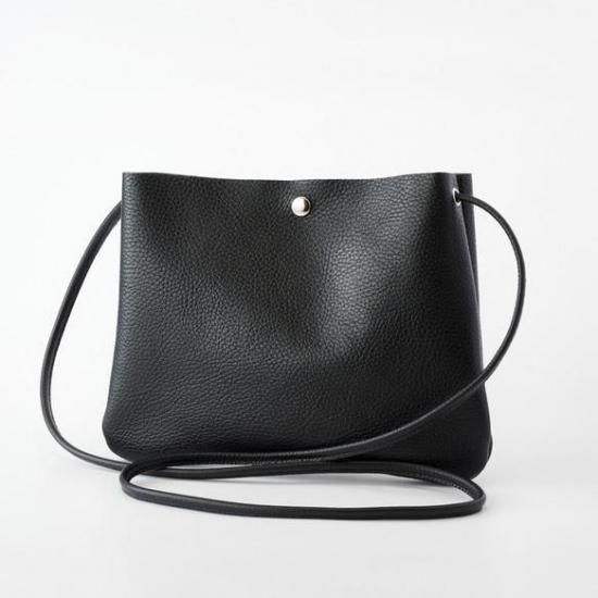 【イタリア革 日本製】 本革シュリンクレザー ショルダーポシェット 【ショルダー長さ自由自在調節可能】(ブラック)