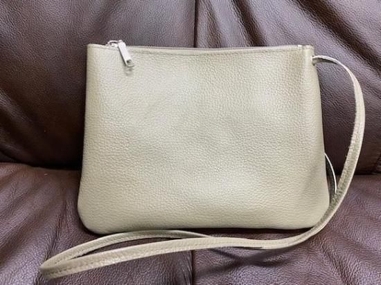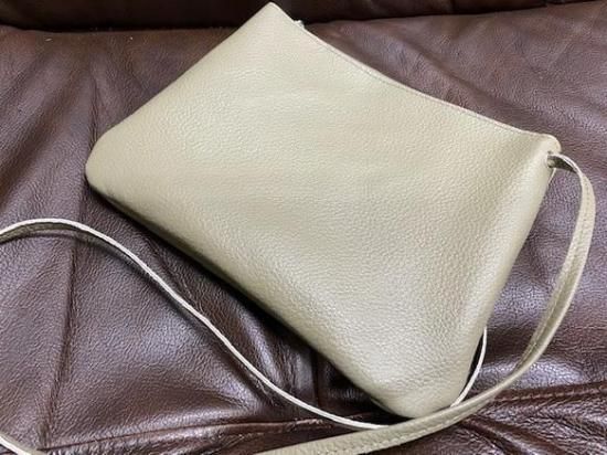 【日本製】天ファスナー付 本革シュリンクレザー ショルダーポシェット 【ショルダー長さ調節自在】 (グレージュ)