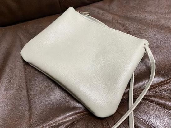 【日本製】天ファスナー付 本革シュリンクレザー ショルダーポシェット 【ショルダー長さ調節自在】 (ライトグレー)