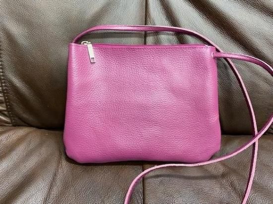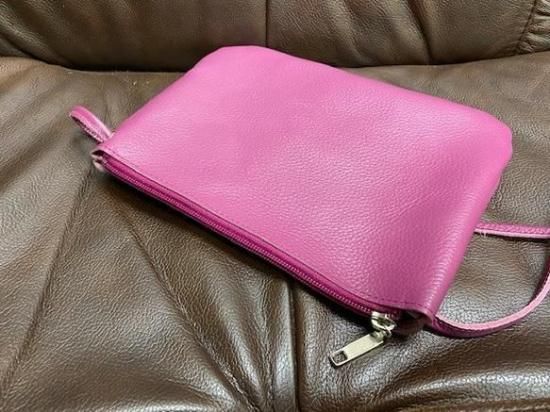 【日本製】天ファスナー付 本革シュリンクレザー ショルダーポシェット 【ショルダー長さ調節自在】 (パープルピンク)