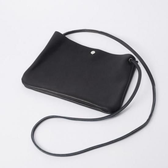 【日本製 ヌメ革】 ソフトヌメ革 経年変化 ショルダーポシェット 【ショルダー長さ自由自在調節可能】(ブラック)