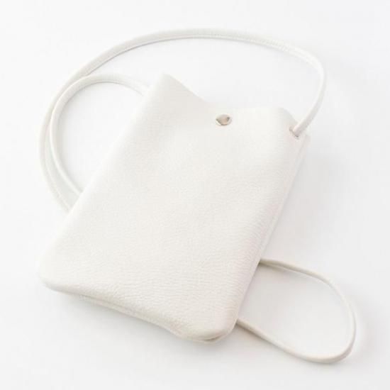 【イタリア革 日本製】本革シュリンクレザー サコッシュ スマホショルダー Mサイズ 【ショルダー長さ自由調節】(ホワイト)