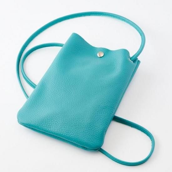 【イタリア革 日本製】本革シュリンクレザー サコッシュ スマホショルダー Mサイズ 【ショルダー長さ自由調節】(アクアグリーン)