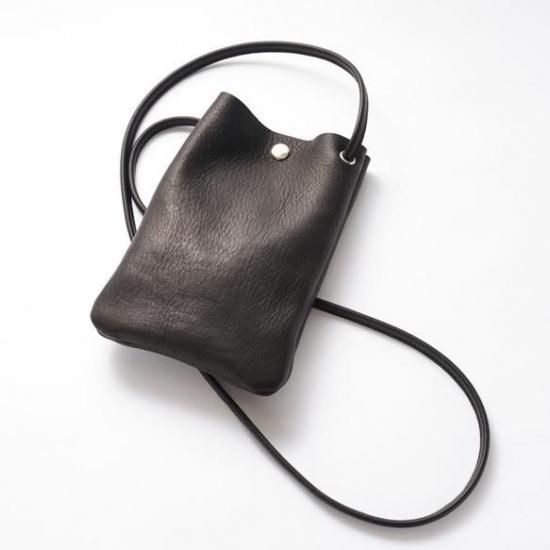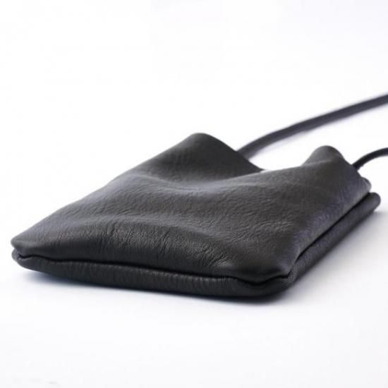 【日本製】ヌメ革 本ヌメ 牛革 サコッシュ スマホポシェット スマホポーチ 【ショルダー長さ自由調節】(ブラック)