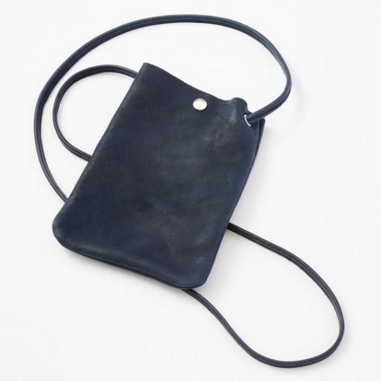 【日本製】ヌメ革 本ヌメ 牛革 サコッシュ スマホポシェット スマホポーチ 【ショルダー長さ自由調節】(ネイビー)