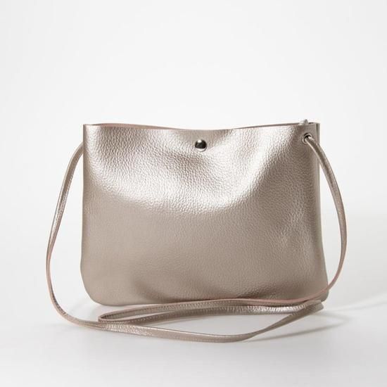 【日本製】 本革シュリンクレザー ショルダーポシェット 【ショルダー長さ自由自在調節可能】(ピンクゴールド)