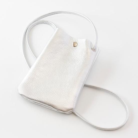 【イタリア革 日本製】牛革 サコッシュ スマホポシェット スマホポーチ 【ショルダー長さ自由調節】(シルバーメタリック)