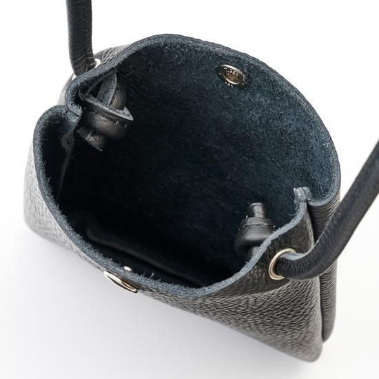 【イタリア革 日本製】牛革 サコッシュ スマホポシェット スマホポーチ 【ショルダー長さ自由調節】(ブラック)
