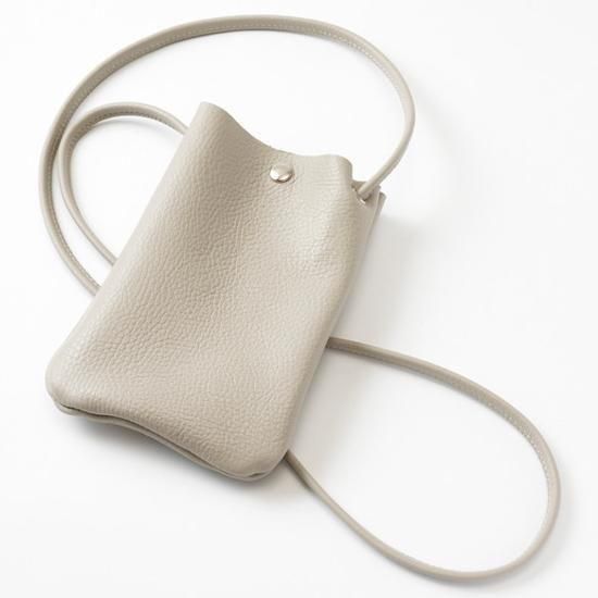 【イタリア革 日本製】牛革 サコッシュ スマホポシェット スマホポーチ 【ショルダー長さ自由調節】(ライトグレー)