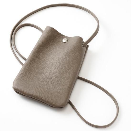 【イタリア革 日本製】牛革 サコッシュ スマホポシェット スマホポーチ 【ショルダー長さ自由調節】(トープ)