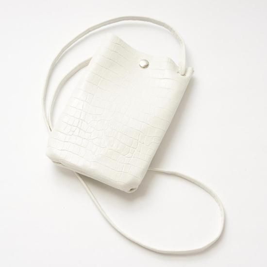 【日本製】 本革クロコ型レザー ショルダーポシェット 【ショルダー長さ自由自在調節可能】(ホワイト)