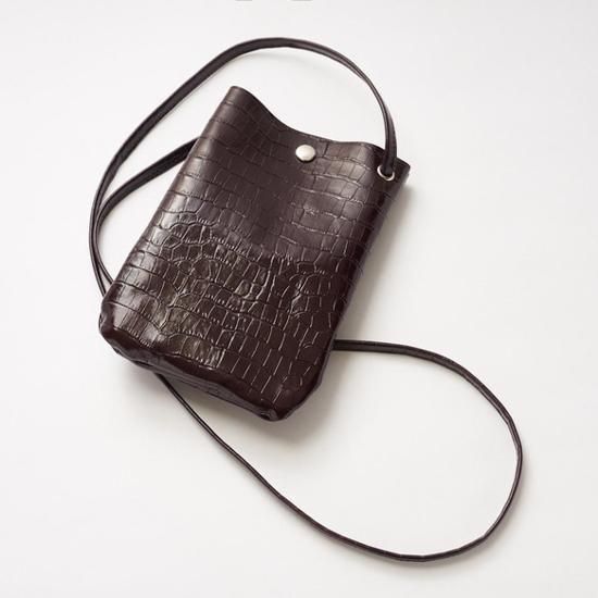 【日本製】 本革クロコ型レザー ショルダーポシェット 【ショルダー長さ自由自在調節可能】(ダークブラウン)