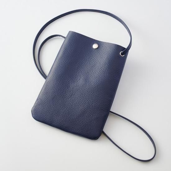 【日本製】本革シュリンクレザーサコッシュ スマホショルダー スマホポーチ Mサイズ 【ショルダー長さ自由調節】(ネイビー)