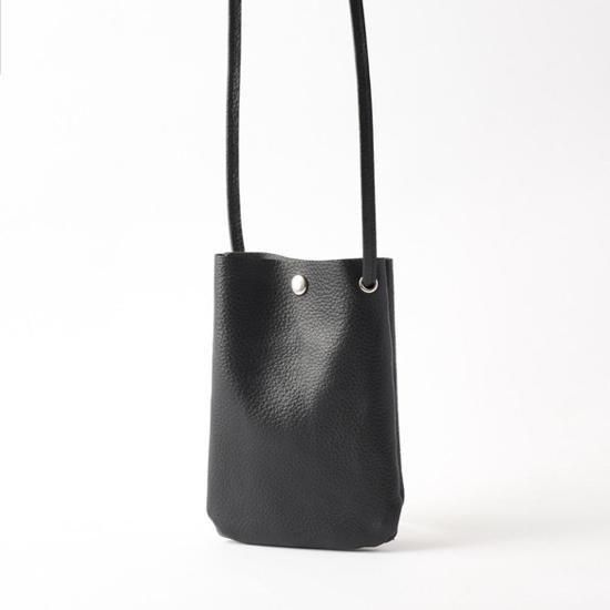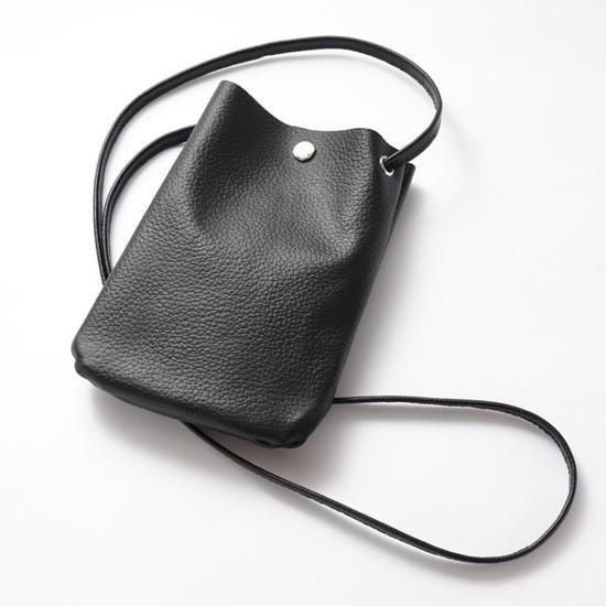 【日本製】本革シュリンクレザー サコッシュ スマホポシェット スマホポーチ 【ショルダー長さ自由調節】(ブラック)