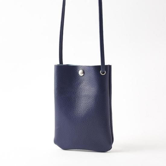 【日本製】本革シュリンクレザー サコッシュ スマホポシェット スマホポーチ 【ショルダー長さ自由調節】(インクブルー)