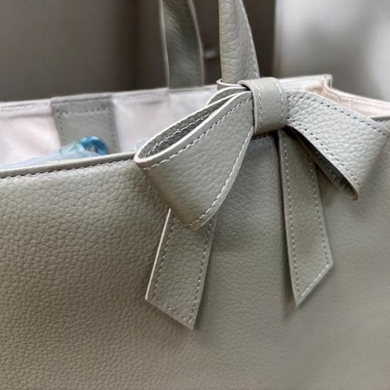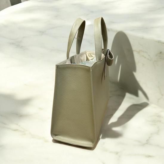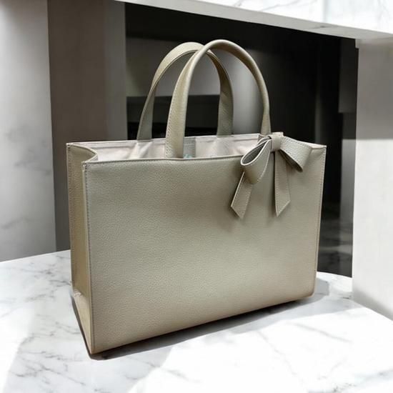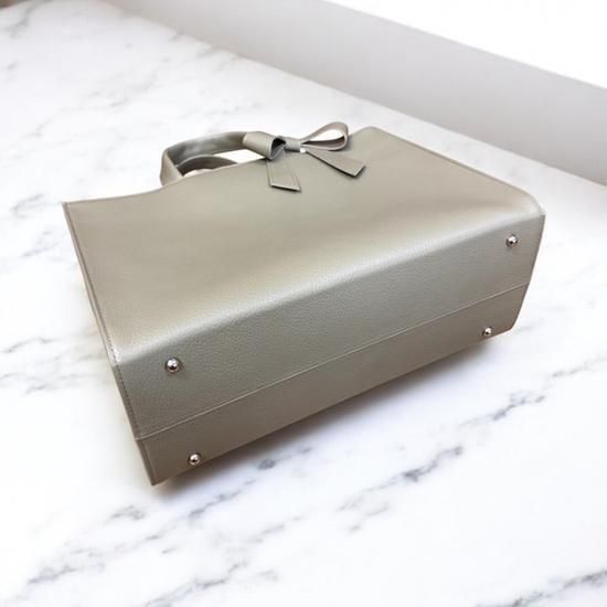 【日本製】本革シュリンクレザー A4対応トート 軽量約650g 取外し可能リボン付き(グレージュ)