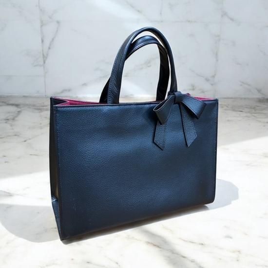 【日本製】本革シュリンクレザー A4対応トート 軽量約650g 取外し可能リボン付き(ブラック)