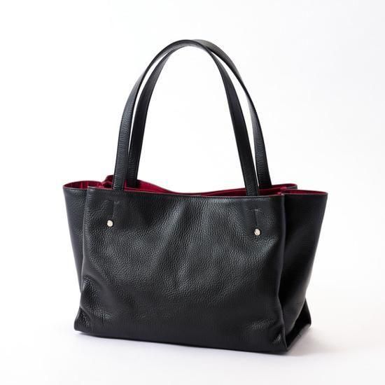 【イタリア革 日本製】A4ファイル対応 ソフトシュリンクレザー オール牛革トートバッグ アオリポケット(ブラック)