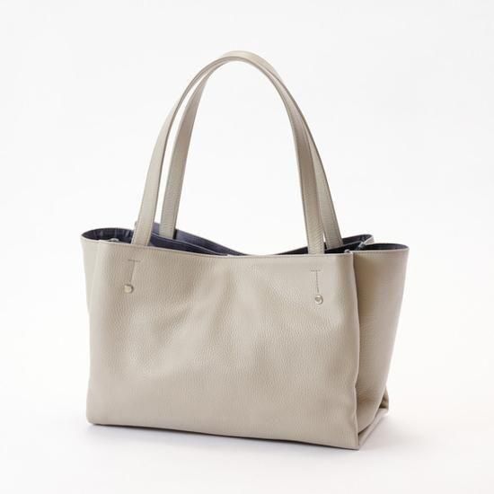 【イタリア革 日本製】A4ファイル対応 ソフトシュリンクレザー オール牛革トートバッグ アオリポケット(ライトグレー)