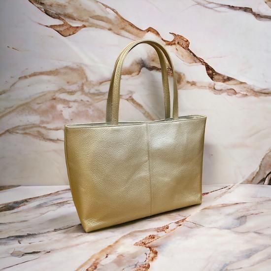 【日本製】A4ファイル対応 軽量約480g オール牛革トートバッグ シュリンクレザー(シャンパンゴールド)