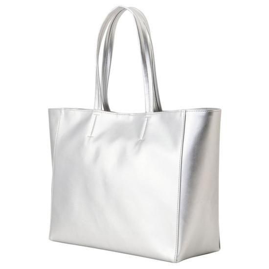 【日本製】上質PUレザー A4ファイルがすっぽり入る 大きなトートバッグ シンプル 超軽量 300g(シルバーメタリック)
