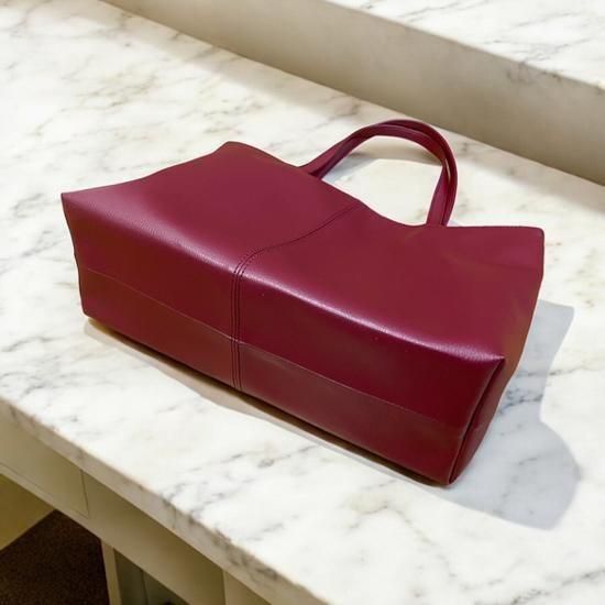 【日本製】超軽量280g 上質PUレザー 防水 A4ファイル対応 底硬めで自立します トートバッグ(ワインレッド)