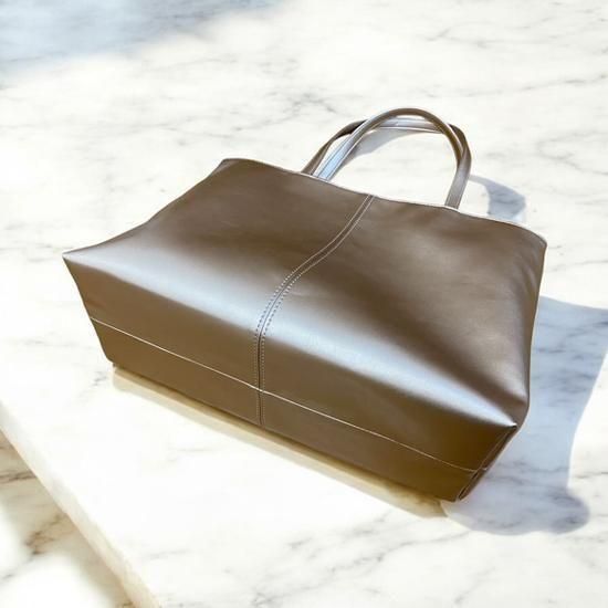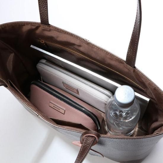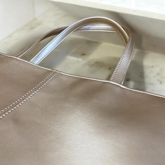 【日本製】超軽量280g 上質PUレザー 防水 A4ファイル対応 底硬めで自立します トートバッグ(ピンクゴールド)