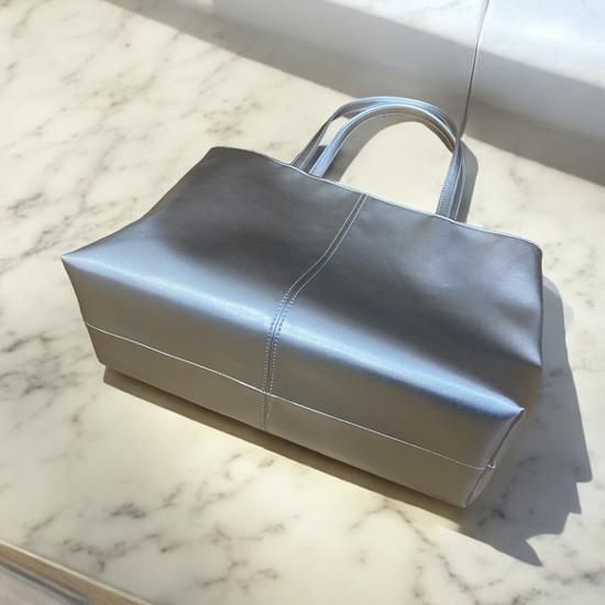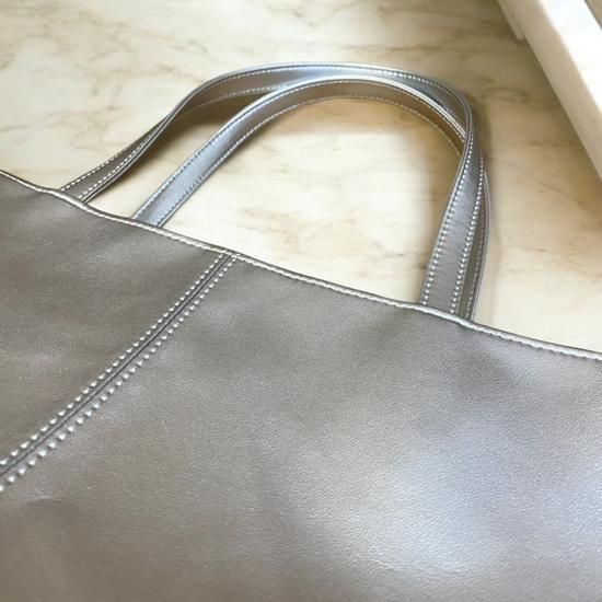 【日本製】超軽量280g 上質PUレザー 防水 A4ファイル対応 底硬めで自立します トートバッグ(シルバーメタリック)
