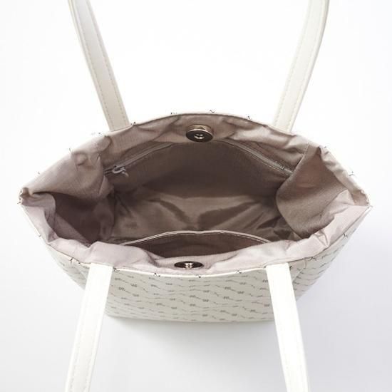 【日本製】超軽量180g 上質PUレザー オリジナル柄 Nモノグラム柄トートバッグ(小)(ホワイト)