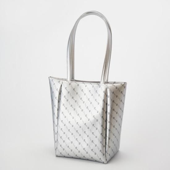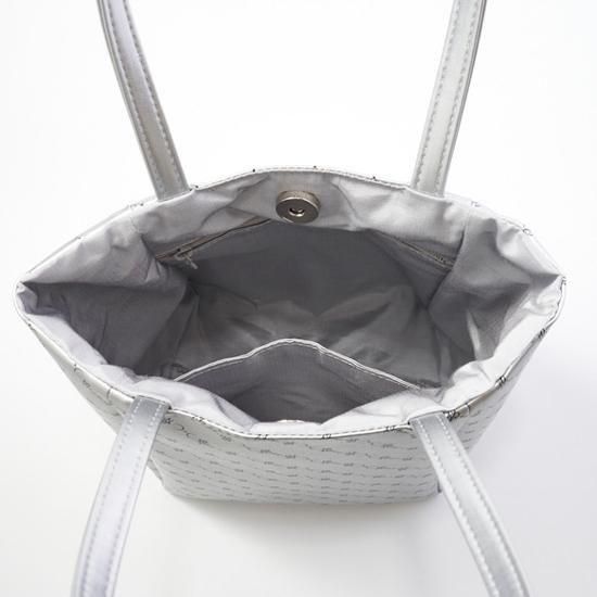 【日本製】超軽量180g 上質PUレザー オリジナル柄 Nモノグラム柄トートバッグ(小)(シルバーメタリック)