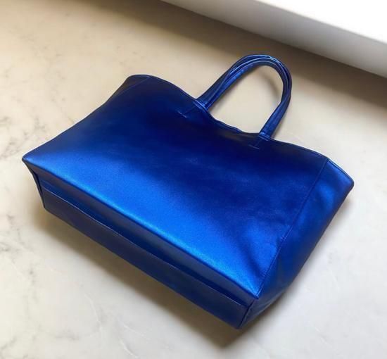 上質PUレザー A4ファイルが入る 大きな防水トートバッグ シンプル 超軽量 370g(メタリックブルー)