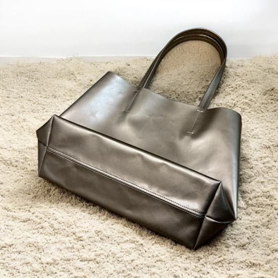 【日本製】A4ファイル対応 ウルトラ軽量 底硬めで垂れませんトートバッグ 約240g PUスムースレザー(ブロンズ)