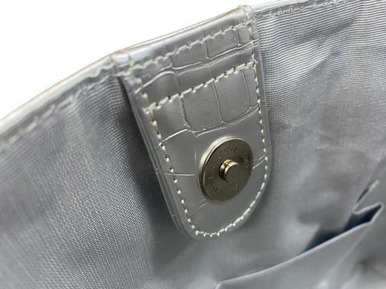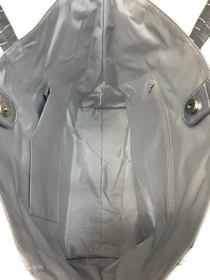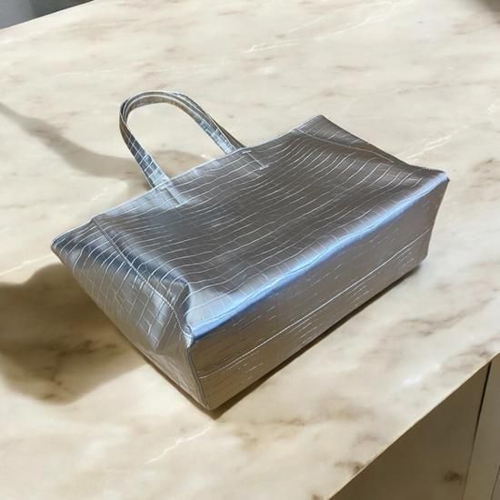 【日本製】クロコ型 上質PUレザー A4ファイルが入る 大きな防水トートバッグ シンプル 超軽量 370g(シルバーメタリック)