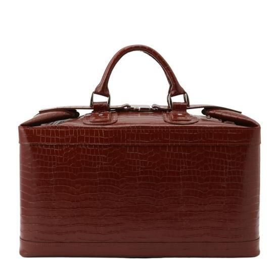 【日本製】42cm 箱型ボストン クロコ型 オール牛革 ボストンバッグ ショルダーベルト付(ライトブラウン)