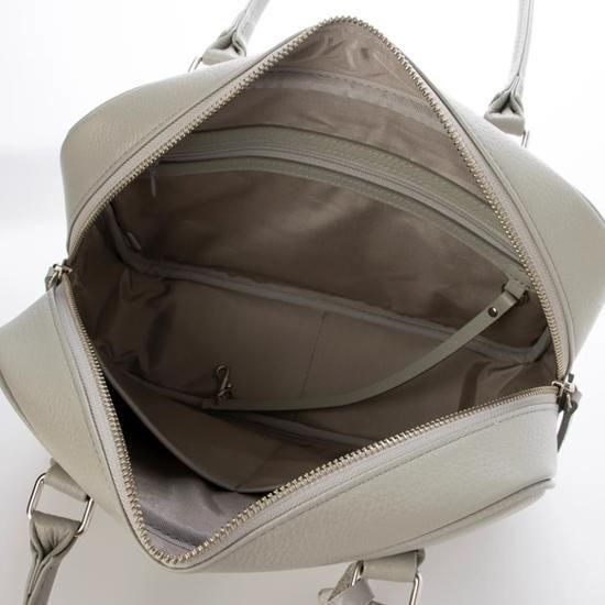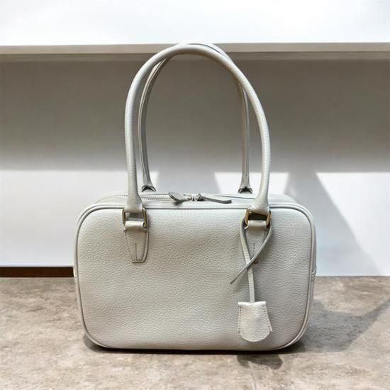 【日本製】本革シュリンクレザー 軽量 Nスクエアボストン ファスナー開閉 キーチャーム付 人気シリーズ(ライトグレー)