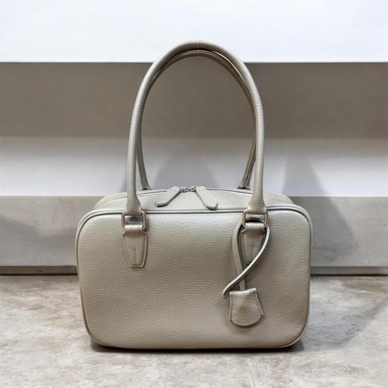 【日本製】本革シュリンクレザー 軽量 Nスクエアボストン ファスナー開閉 キーチャーム付 人気シリーズ(グレージュ)