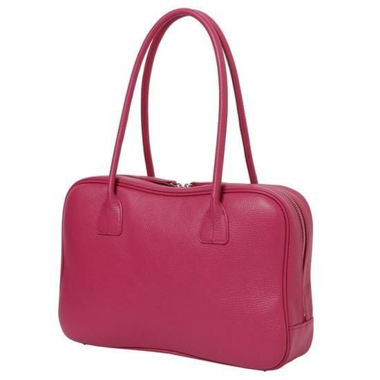 【イタリア革 日本製】A4対応 人気のスクエアボストン オール牛革 本革バッグ 軽量 ソフトシュリンクレザー(フューシャピンク)