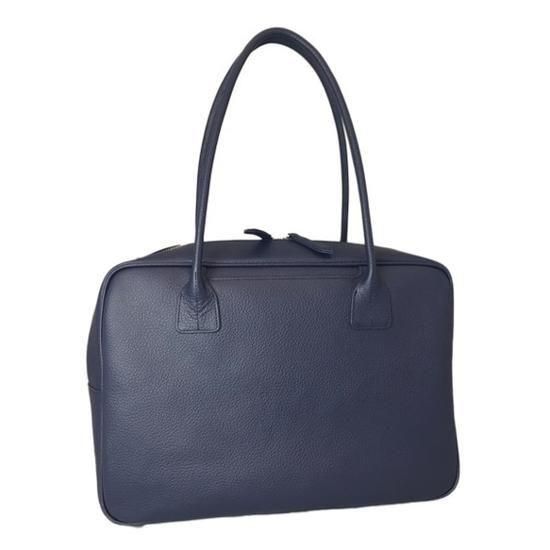 【日本製】A4対応 人気のスクエアボストン オール牛革 本革バッグ 軽量 リアル シュリンクレザー(ネイビー)