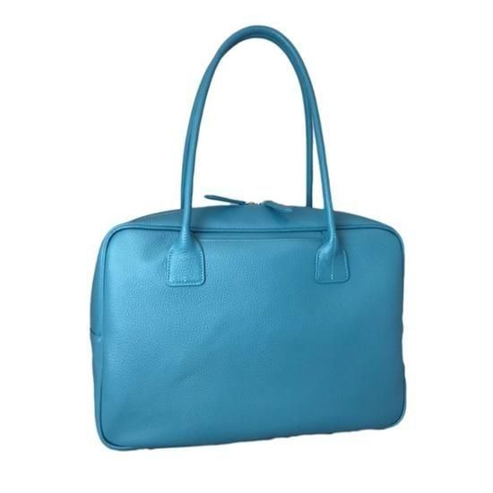【日本製】A4対応 人気のスクエアボストン オール牛革 本革バッグ 軽量 リアル シュリンクレザー(ライトブルー)