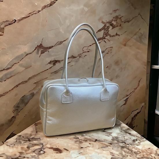 【日本製】A4対応 人気のスクエアボストン オール牛革 本革バッグ 軽量 リアル シュリンクレザー(シルバーメタリック)