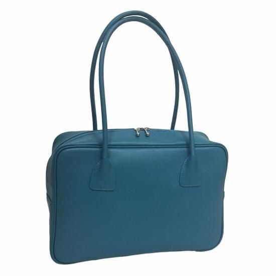 【日本製】A4対応 人気のスクエアボストン オール牛革 本革バッグ 軽量 リアル シュリンクレザー(ライトブルー)