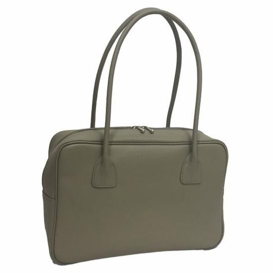 【日本製】A4対応 人気のスクエアボストン オール牛革 本革バッグ 軽量 リアル シュリンクレザー(グレージュ)