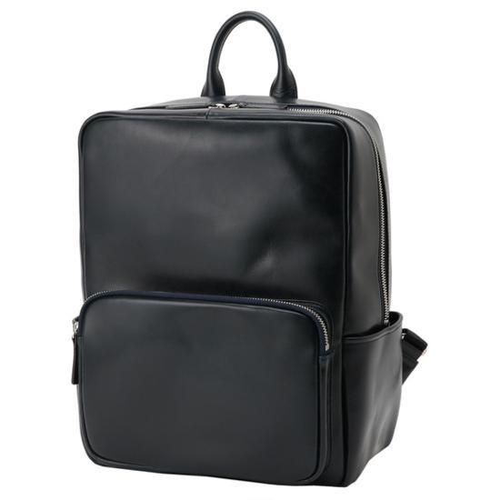 【日本製】贅沢ヌメ革 本革リュック A4ファイル対応 バックパック 艶ヌメ革(ダークネイビー)