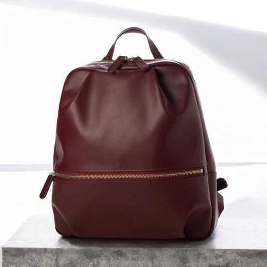 【日本製】上質PUシュリンクレザー 収納力抜群 リュック A4対応 軽量 510g バックパック(ワインレッド)