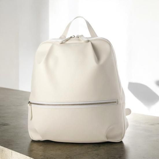 【日本製】上質PUシュリンクレザー 収納力抜群 リュック A4対応 軽量 510g バックパック(ホワイト)